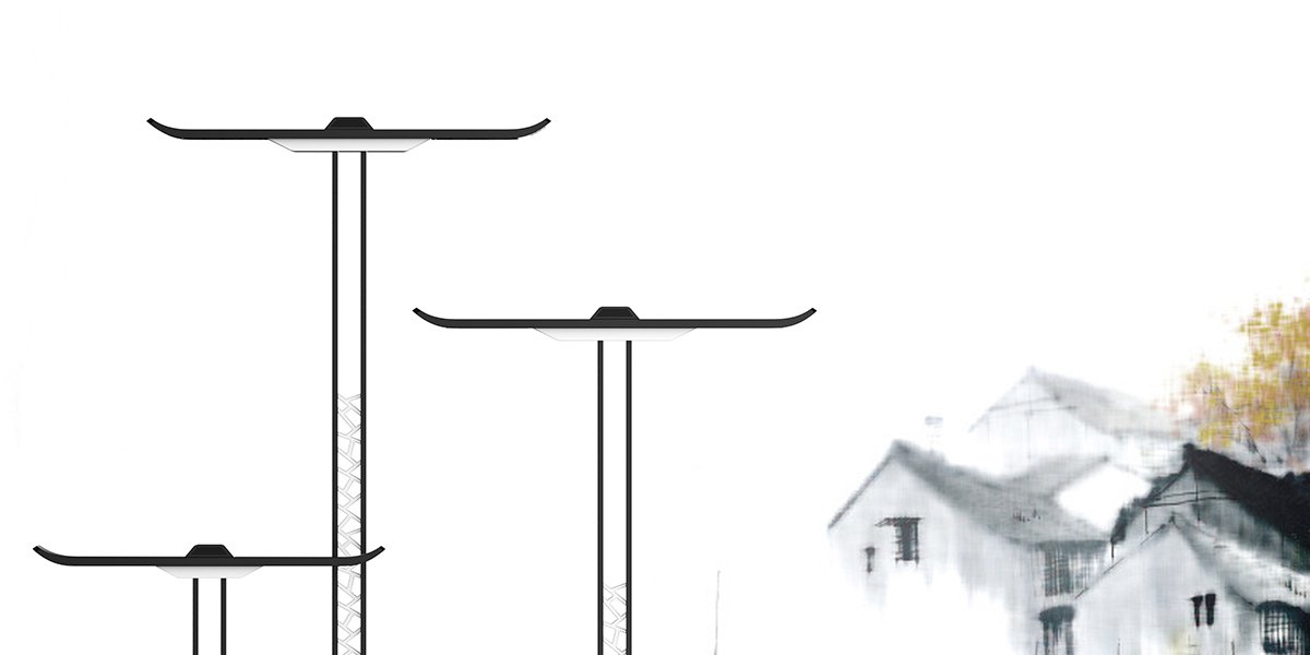 以江南獨(dú)特的建筑風(fēng)格設(shè)計此款路燈,應(yīng)用白墻黑瓦的色彩,將烏黑的瓦房上翹元素運(yùn)用至路燈的照明位置,加以花窗式錯落有致的紋路樣式,讓此款路燈更具江南風(fēng),營造了獨(dú)特的江南韻味。